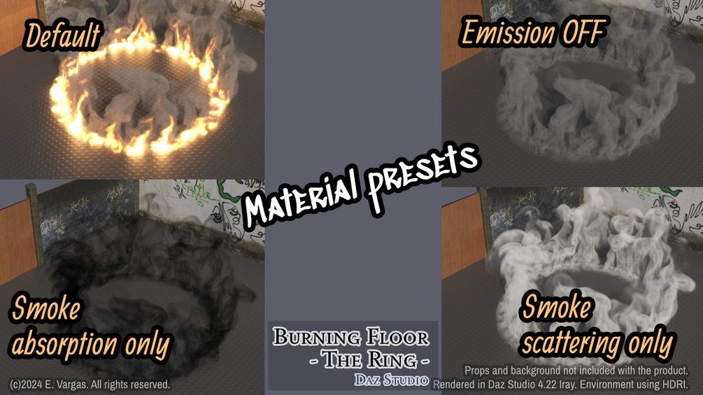 • Material presets (Iray): Default, Emission OFF, Smoke absorption only, Smoke scatter only;